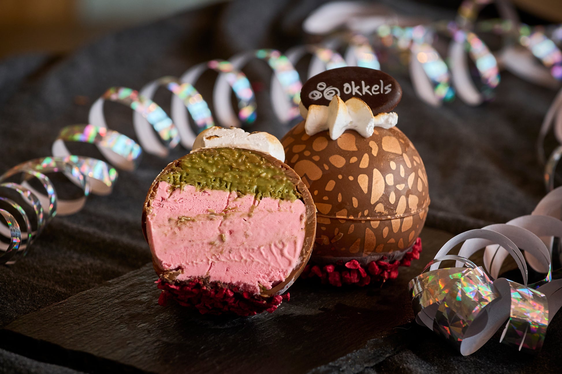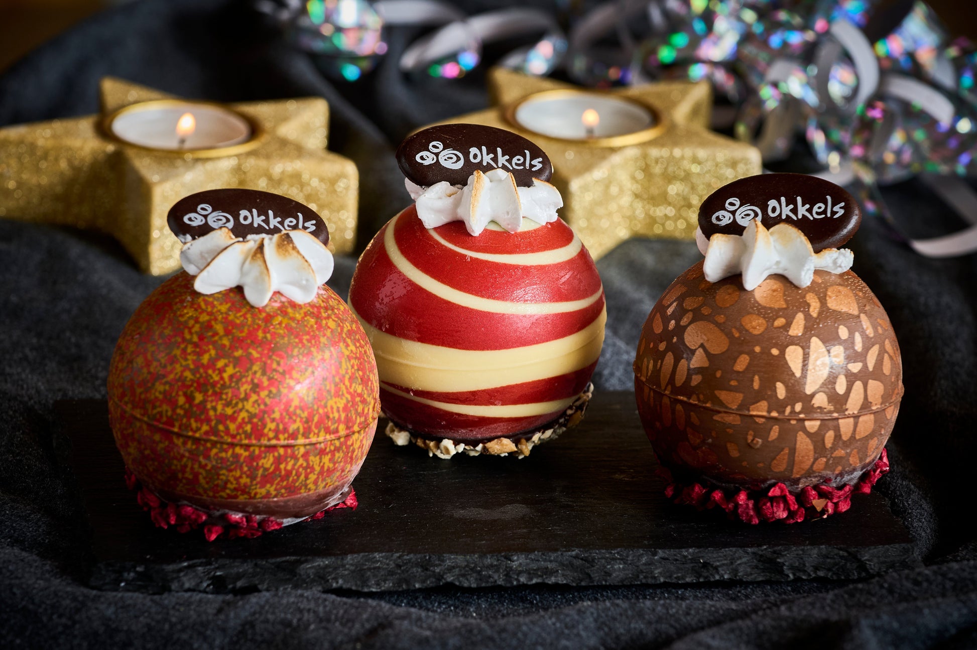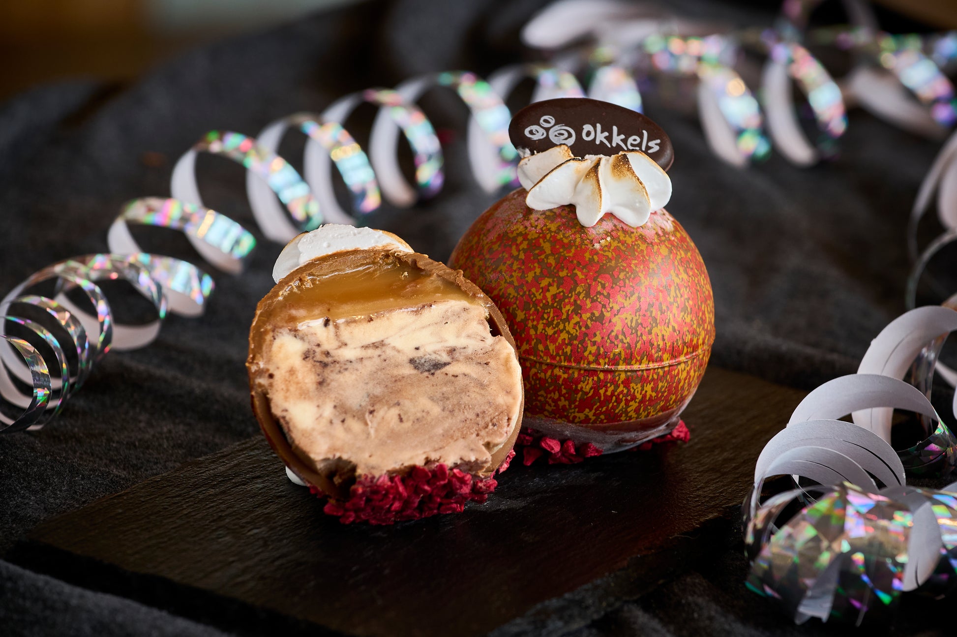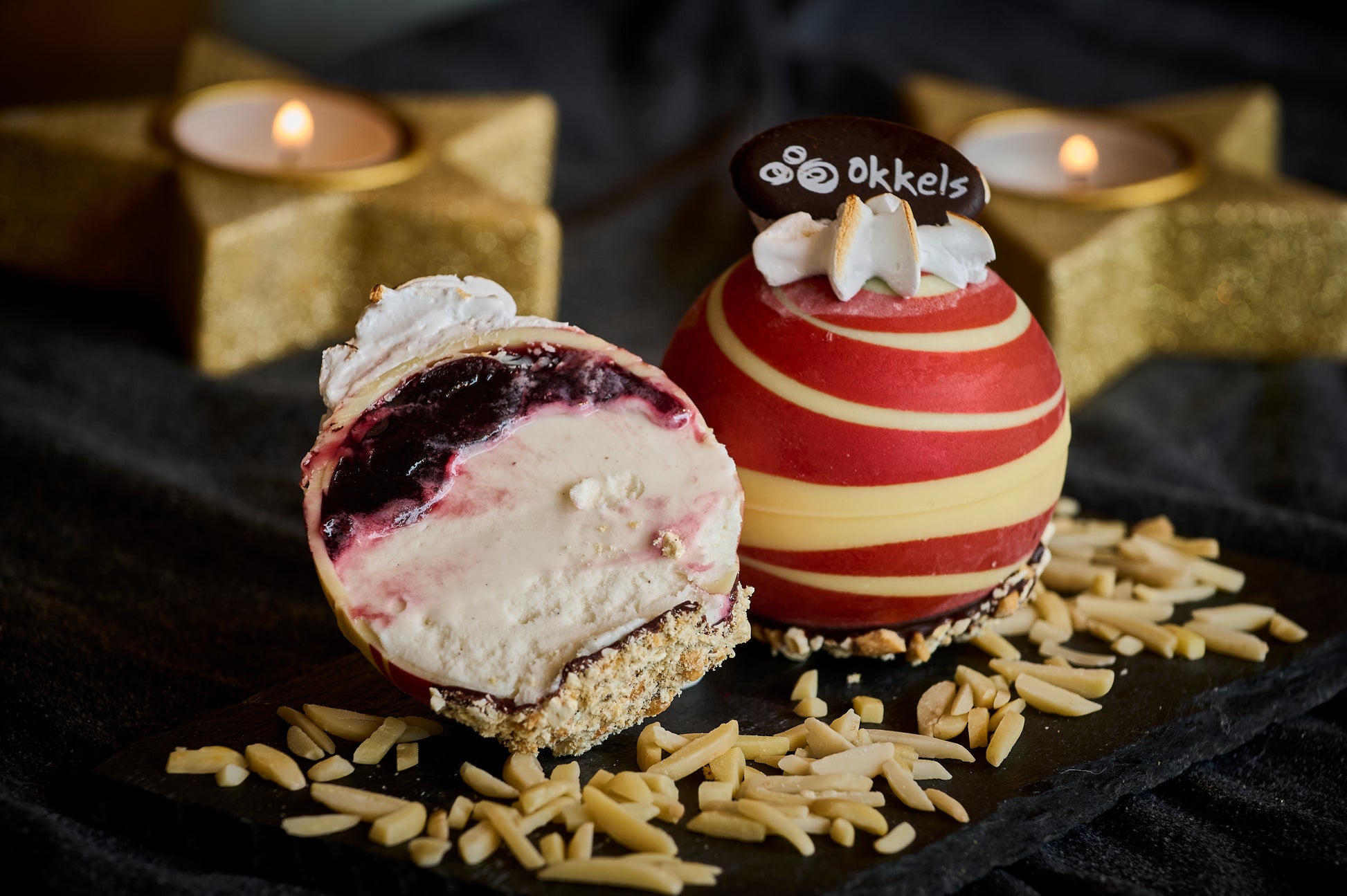 Håndfyldte julebomber indpakket i en hvid chokolade skal af Callebaut chokolade, og indeni gemmer der sig is ala mande, mandelsplitter og lækker Amarena kirsebær. Der kan endda puttes mandel i julekuglen, såfremt det ønskes.